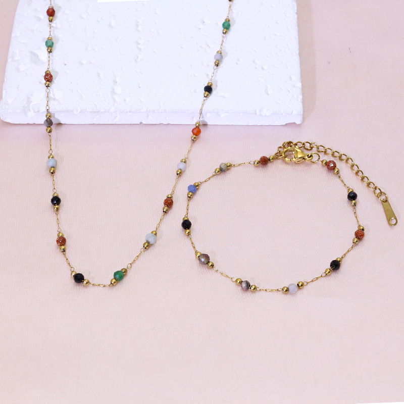 Manufacturer Produces Customized Mix and Match Natural Stone Splicing Design Necklace Titanium Steel Versatile and Exquisite Elegant Set Chain for Women