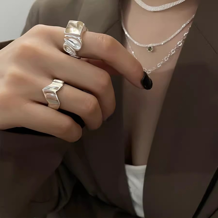 Minimalist Irregular Texture Sugar Cube Ring for Women Trendy Cool Mix and Match Personality Exaggerated Trendy Open Index Finger Ring
