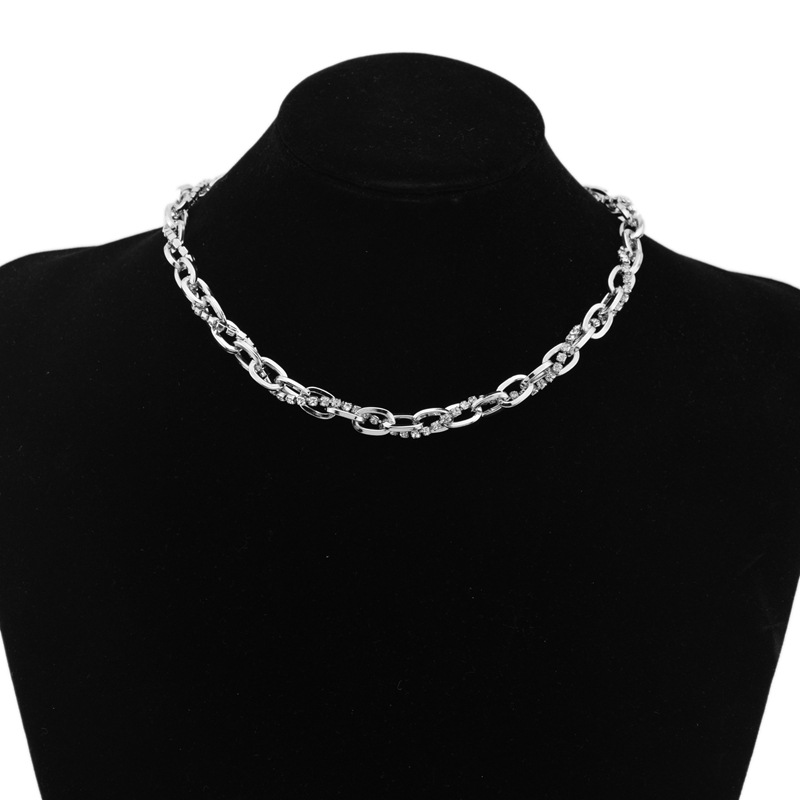 Rhinestone chain spring buckle clavicle necklace fashion ins neutral style rhinestone necklace men and women mix and match stacked necklace