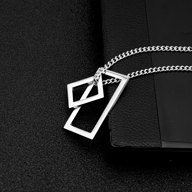 Unisex Style Double Rectangular Sweater Chain Ol Fashionable and Generous Titanium Steel Necklace Mix and Match Couple Style T-Shirt Sweater Chain