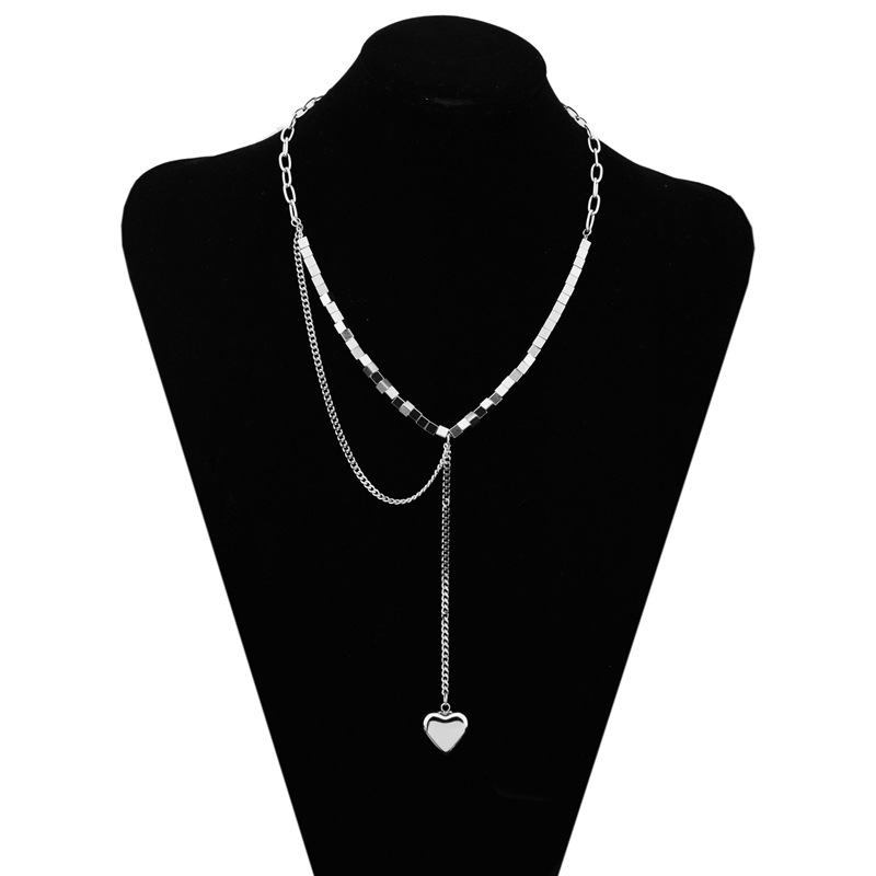Handmade diy wearing square stitching necklace love long tassel clavicle necklace neutral wind mix titanium steel necklace