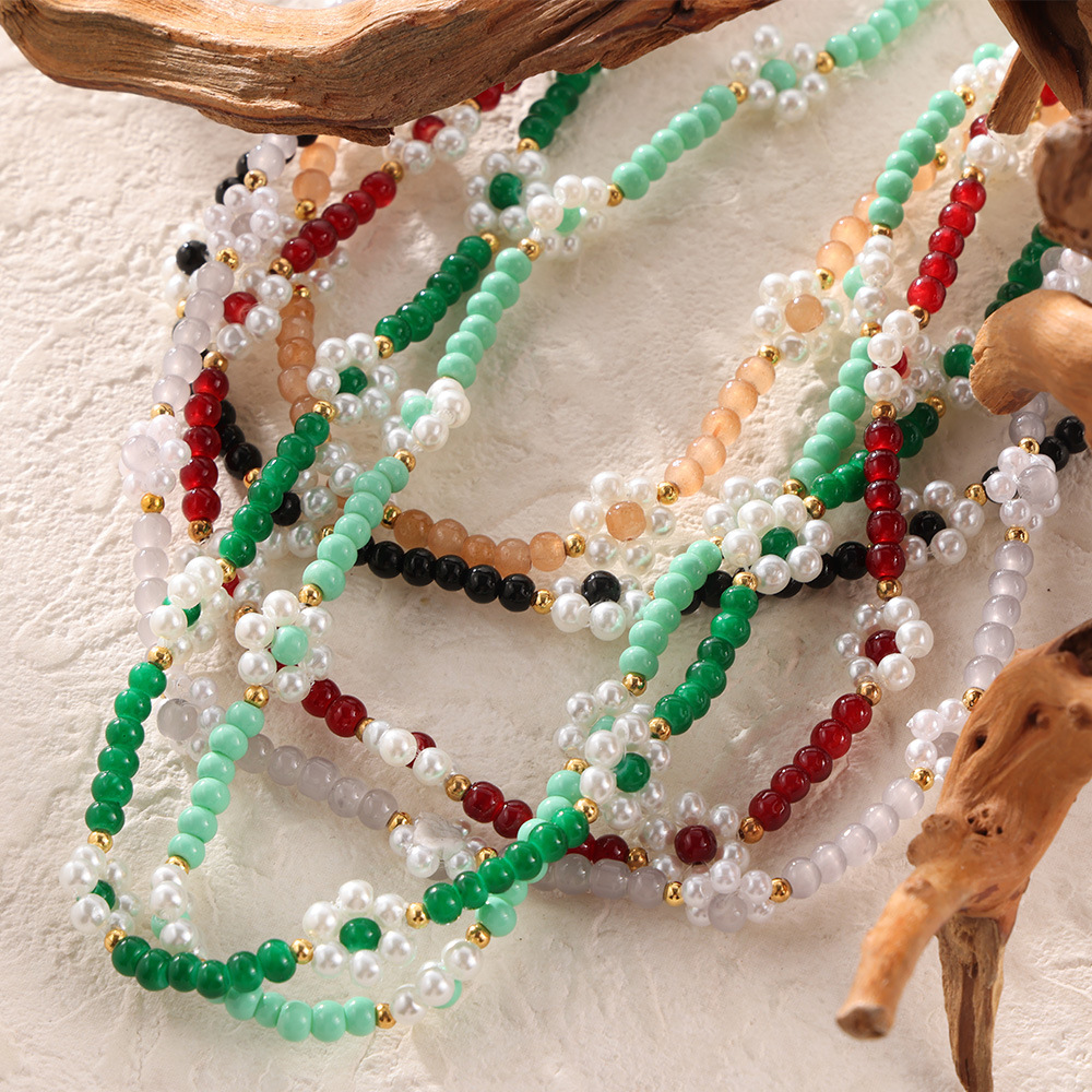 Dopamine Wear Elegant Jewelry Beads Mix and Match Colorful Natural Stone Handmade Beaded Design Titanium Steel Gold Plated Necklace