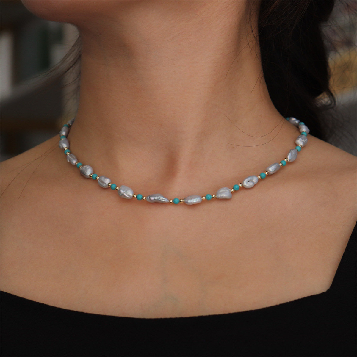 Suu New Simple Real Multi-gray Fresh Water Pearl Silver Mix and Match Small Fresh Turquoise Necklace