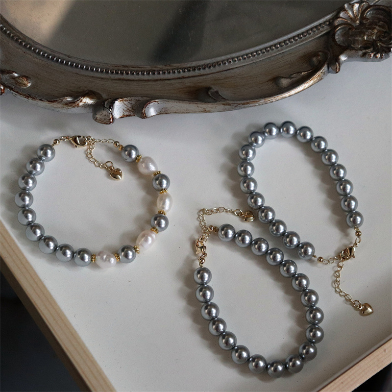 suu new Shijia silver gray really linen glass Pearl with fresh water pearl mix and match temperament bracelet