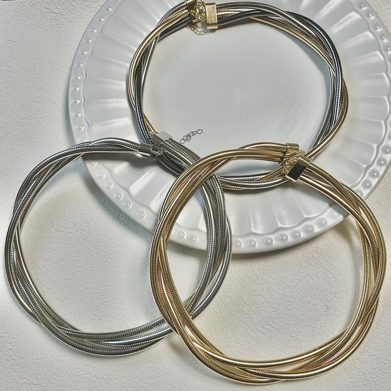 Round Metal Multi-Layer Winding Collar Alloy Twist Necklace Women's Unique Personalized Bracelet Design Clavicle Chain
