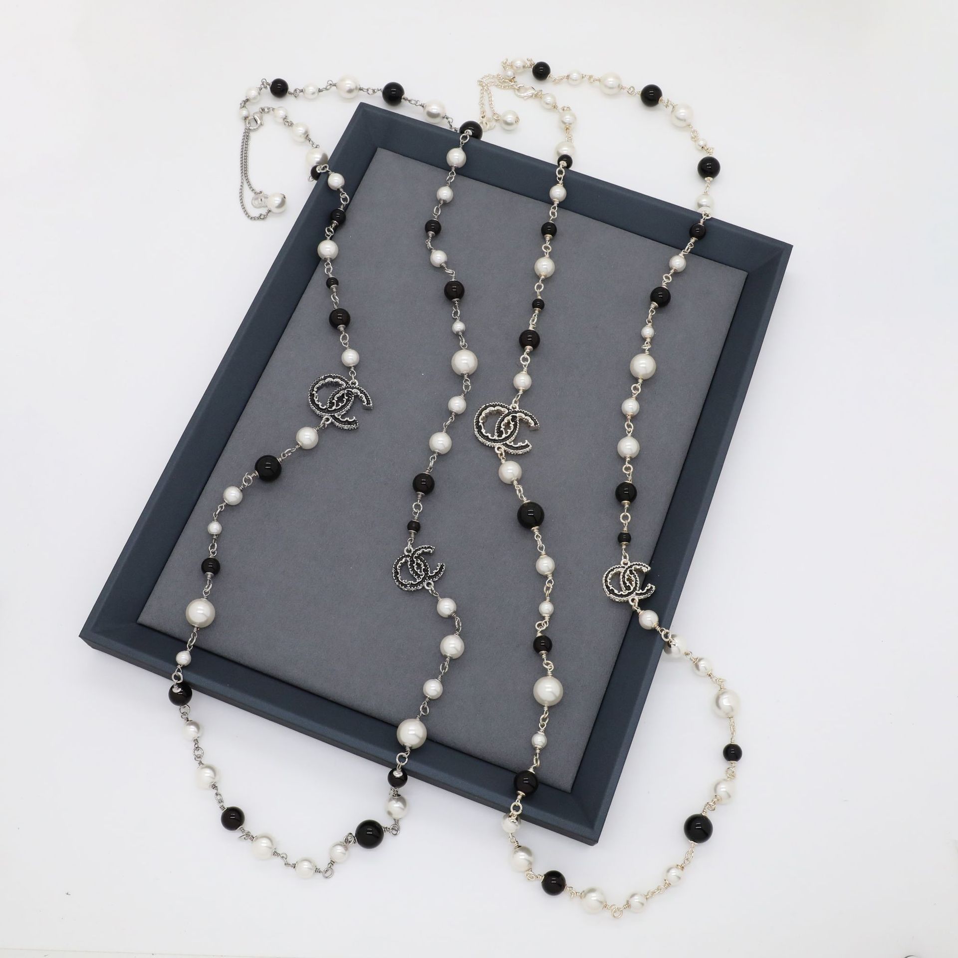 Classic fashion black and white mix pearl black enamel double C women's decorative double layer small fragrance sweater chain necklace