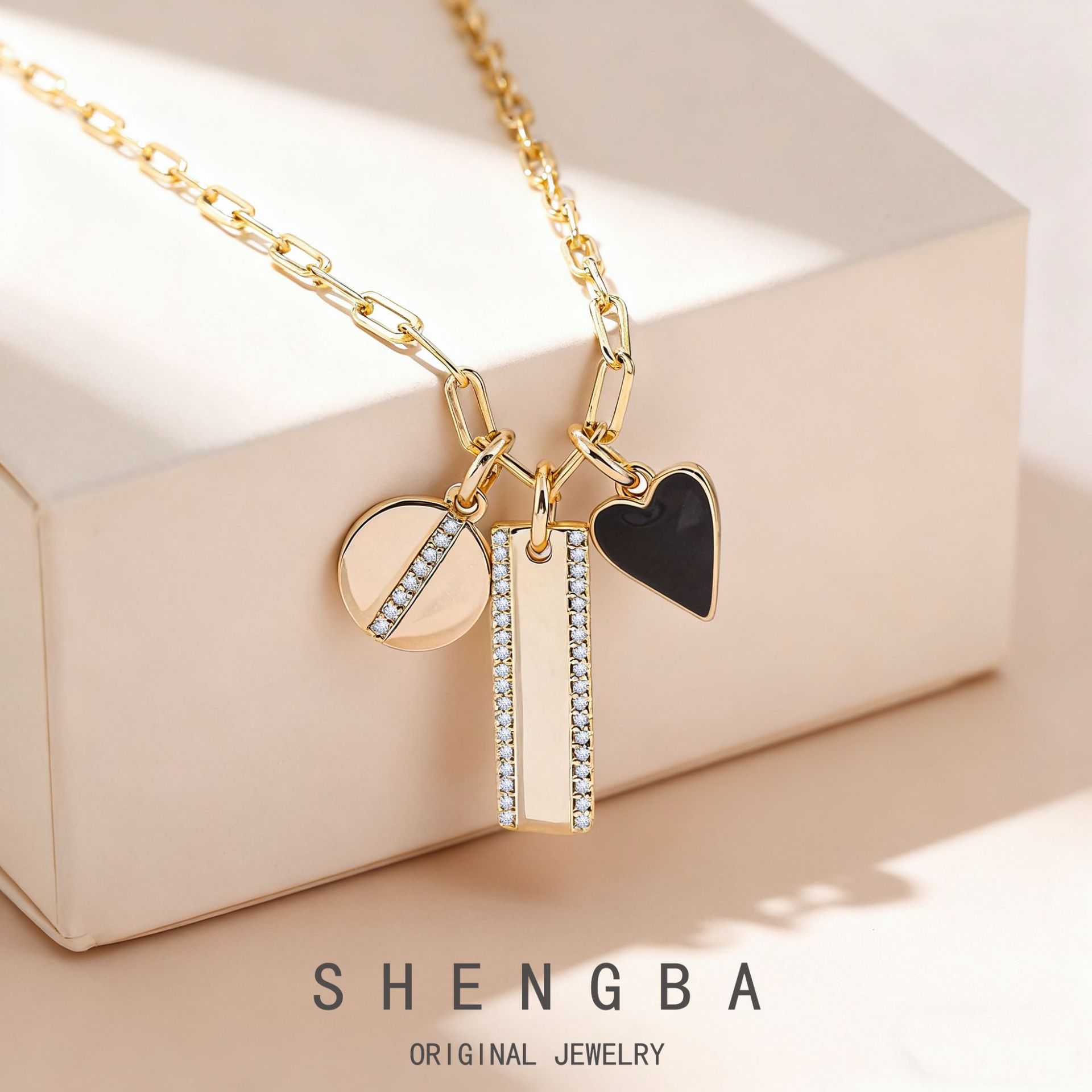 European and American Cross-Border Best-Selling DIY Long Heart Necklace for Women, Unique Trendy Niche Design Round Pendant Mixed Style Necklace