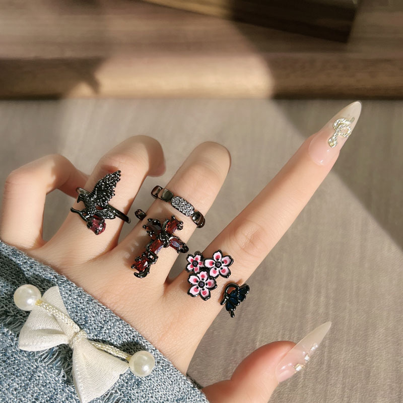 A Variety of Mixed and Matched Flower Butterfly Niche Accessible Luxury Open Rings for Women, Light Sweet Glaze, Cool Style, Exquisite Stacking Rings