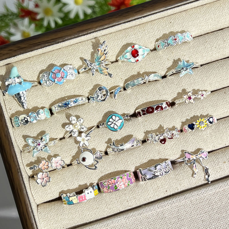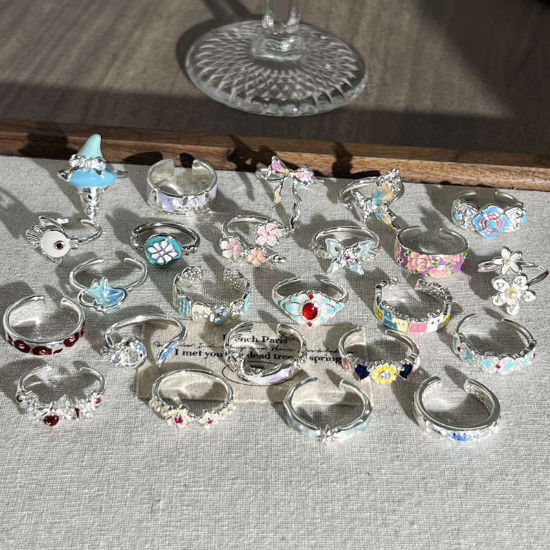 Lightly Sweet Colored Glaze, Various Mixed and Matched Flowers and Butterflies, Niche Accessible Luxury Open Rings for Women, Cool Style, Exquisite Stacking Rings