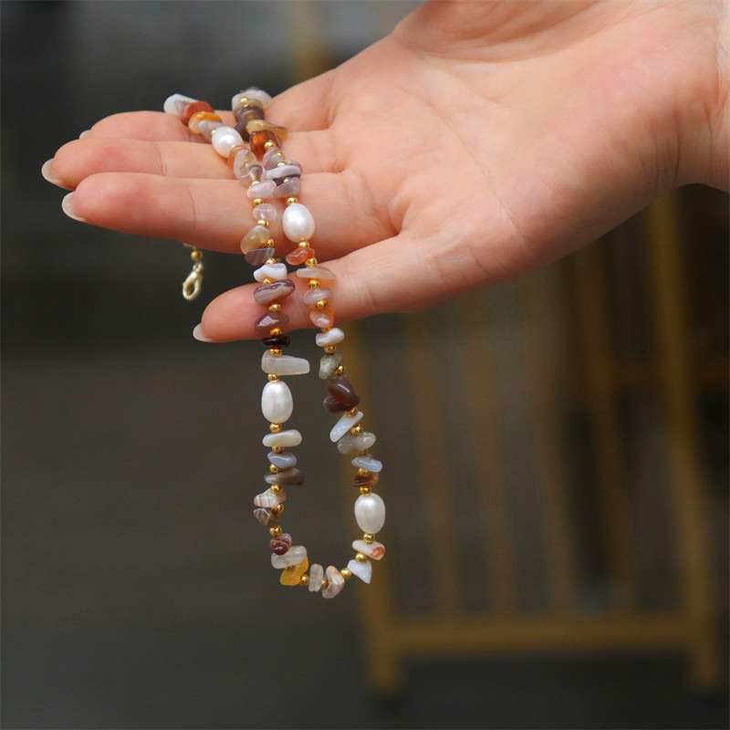 Designed with a Simple and Elegant Natural Agate Freshwater Pearl Mix and Match Niche Accessible Luxury European and American Beaded Necklace Clavicle Chain