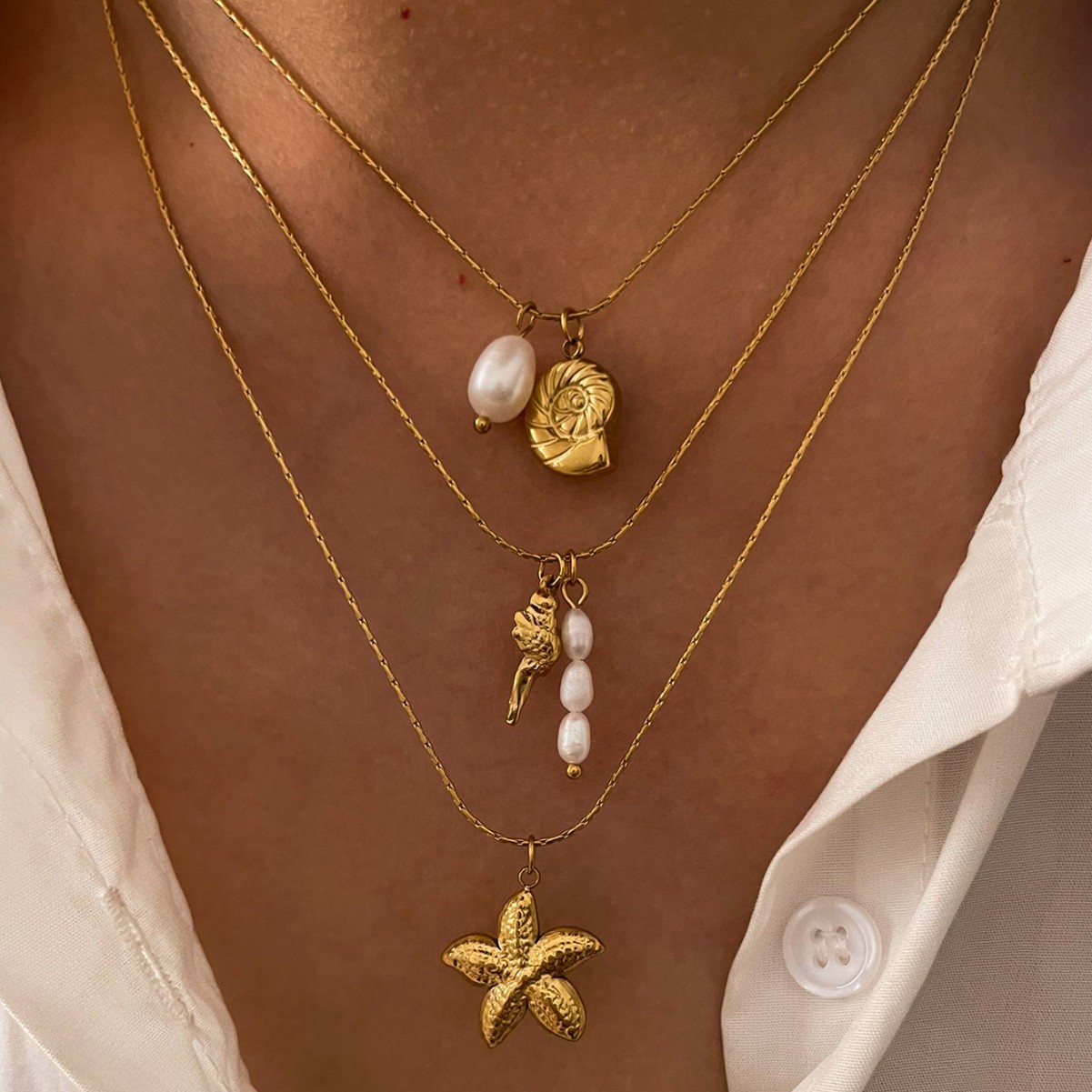 Niche Simple Stainless Steel Conch Starfish Freshwater Pearl Mix and Match Necklace Exquisite Stacked Women's Necklace Clavicle Chain