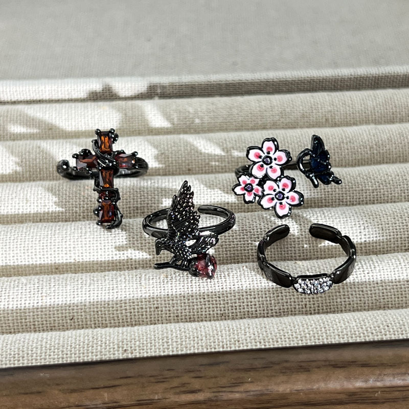 Dark Style Cross Flying Eagle Trendy Cool Mix and Match Personalized Open Ring Gothic Genderless Style Exquisite Fashion Ring