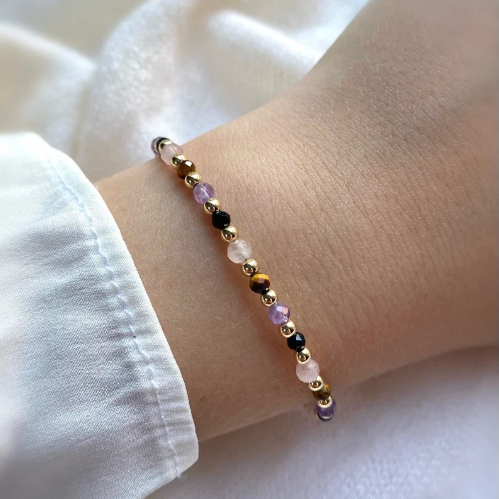 Niche Design Natural Stone Beaded Bracelet for Women, Colorful Crystal Mix and Match Ins Style Adjustable Bracelet, Cross-Border Jewelry