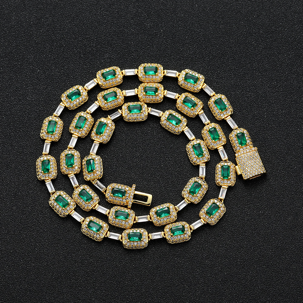 Rectangular Green Zirconium Necklace European and American Hip-Hop Jewelry Single Row Zircon Personalized Street Stacking Mixed Zircon Necklace