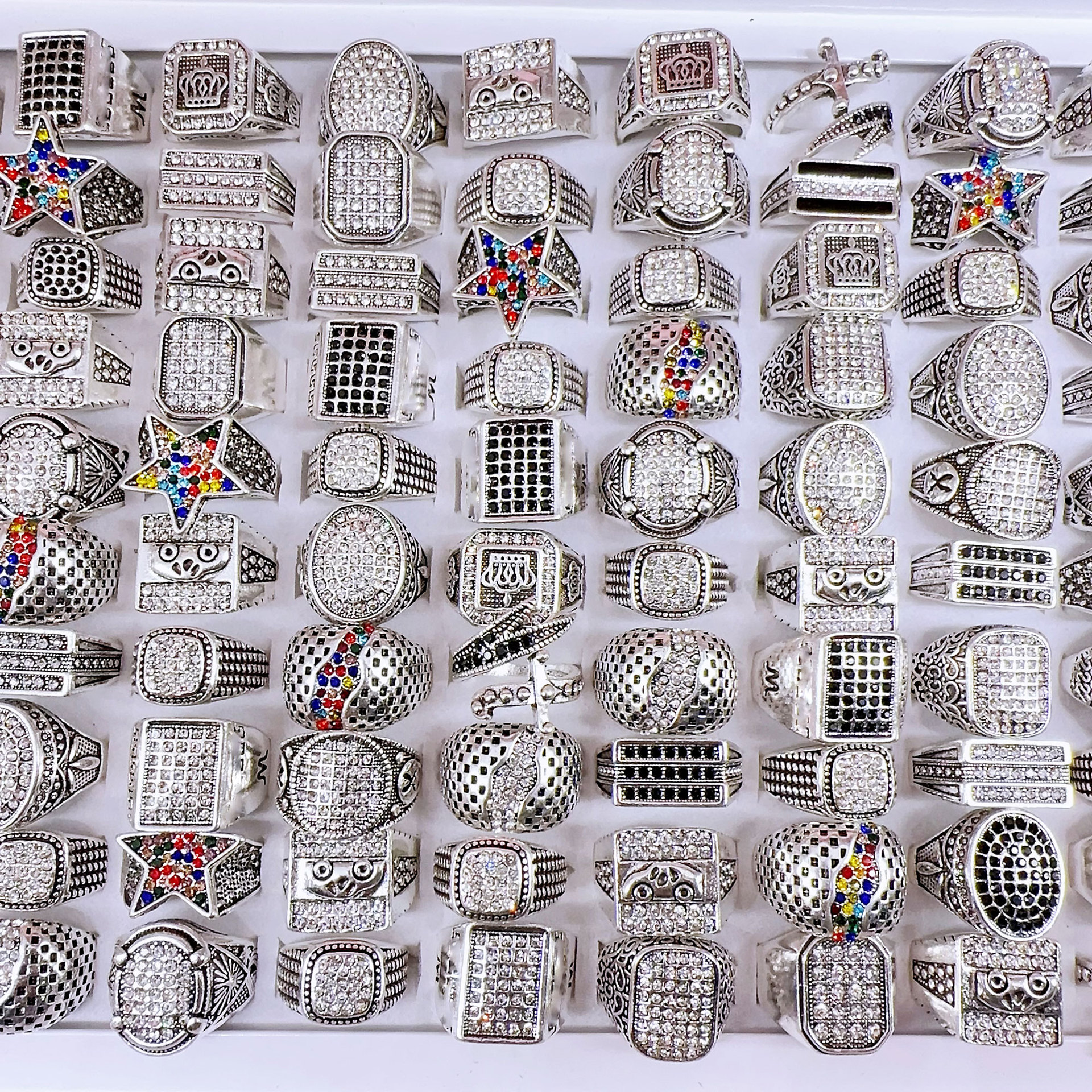 Full diamond plus size exaggerated men's ring alloy retro style multi-style index finger ring cross-border export jewelry