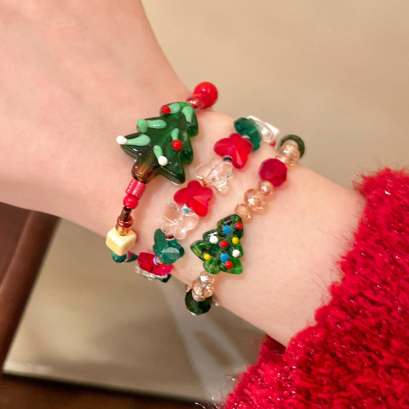Christmas Colorful Beaded Bracelet for Women Autumn and Winter Cute Gingerbread Man Glass Bracelet Festive Atmosphere Bestie Hand Accessories