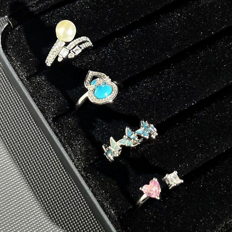 Unique Design Retro Light Luxury Blue Dream Butterfly Pearl Blue Open Ring Women's Personality Mix and Match Fashion Ring