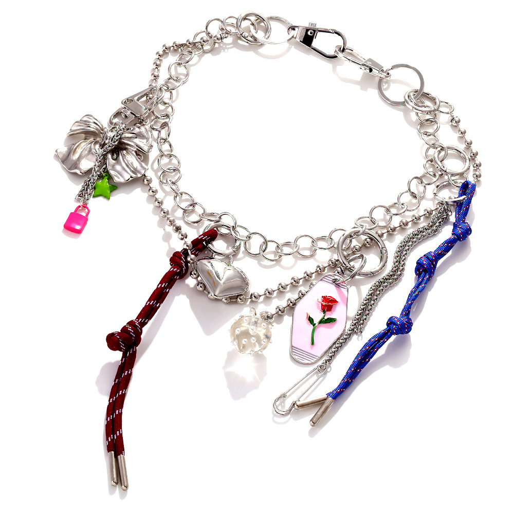 ZA Exaggerated Design Sense Multi-Layer Stitching Mix and Match Hanging Necklace European and American Heart-Shaped Enamel Flower Accessories Overlapping Necklace