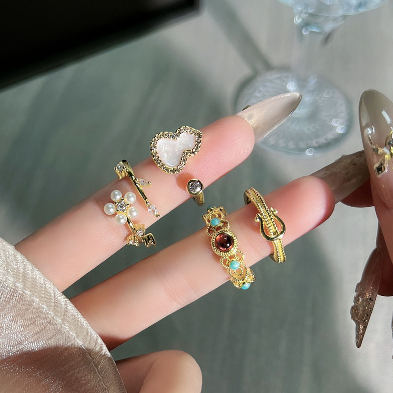 Fingertip Colorful Retro Palace Style High-End Gourd Flower Pearl Ring Feminine Mix and Match Fashion Index Finger Ring