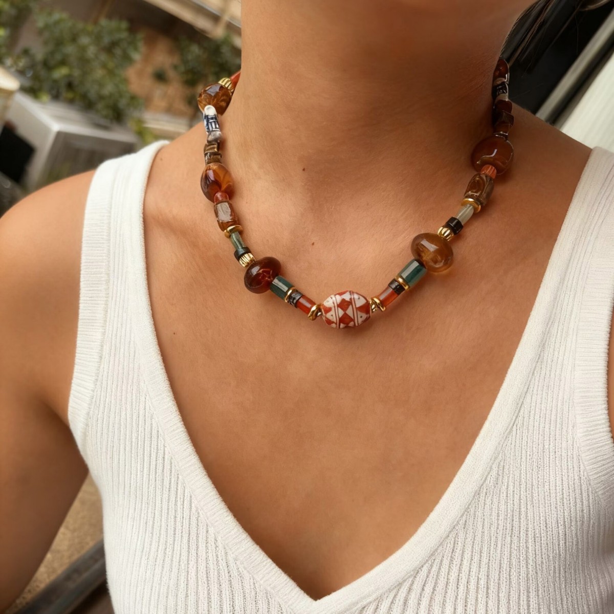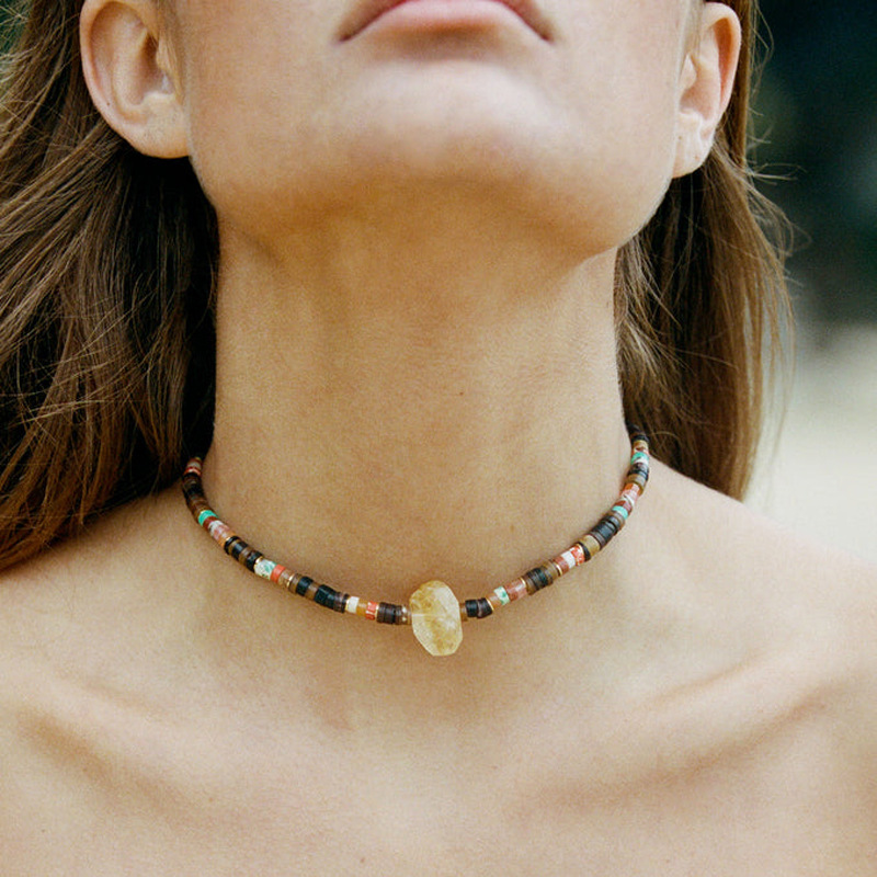 Bohemian Stitching Short Necklace Spring and Summer Tide Blogger Wearing Semi-precious Clavicle Chain for Bathing Without BJS