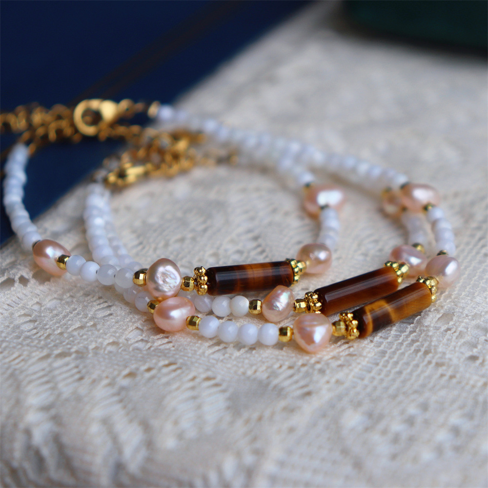 Design New Simple Retro Elegant Natural Freshwater Pearl Shell Beads Mix and Match Tiger Eye Natural Stone Bracelet Necklace