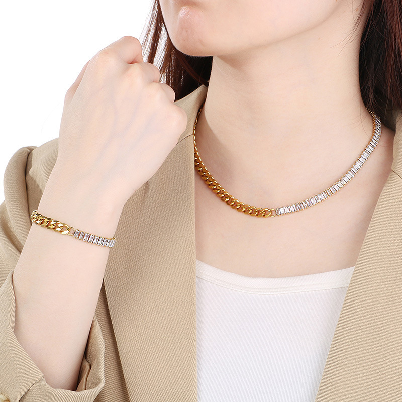 Titanium Steel Mix and Match European and American Fashion Diamond Stitching Bracelet Women's High-End Stainless Steel Necklace Cross-Border Wholesale Supply