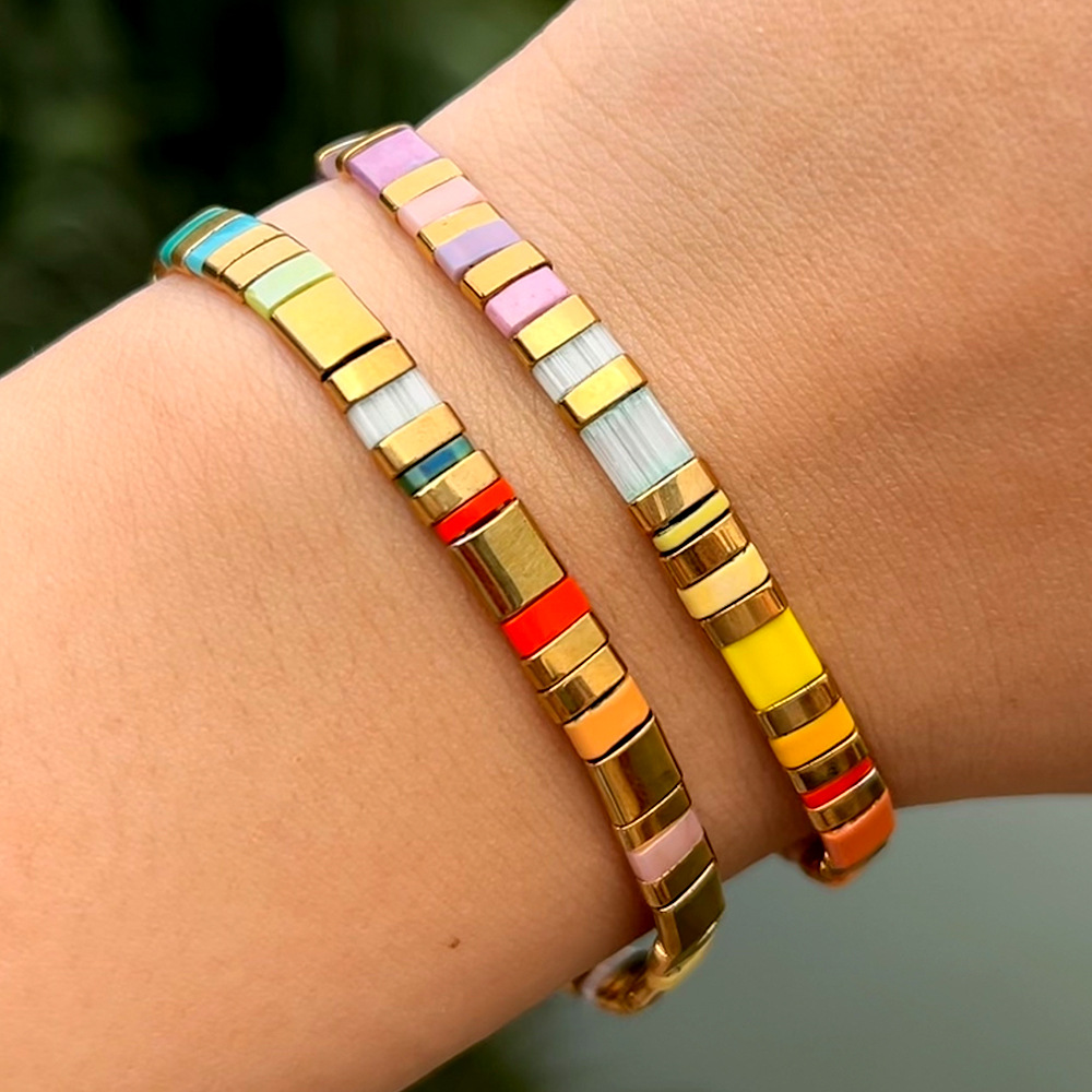 Summer Hot-Selling Multi-Color Tila Bead Bracelet·Golden Square Mix and Match Multi-Layered Fashion Trend Must-Have Item