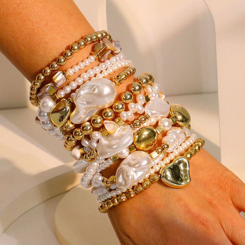 Bohemian Retro Cross-Border Popular Luxury Stacked Style Pearl and Gold Bead Mixed Multi-Layer Bracelet Manufacturer