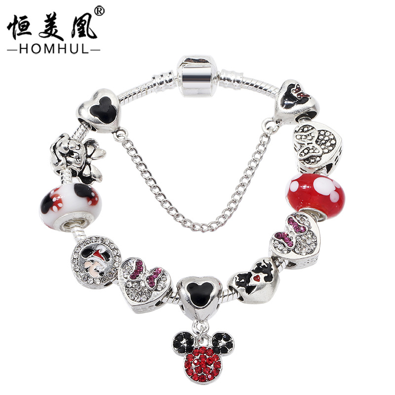 2020 European and American Panjia Style Christmas Theme Pendant String Bracelet Red Glass Beads Cartoon Character Accessories