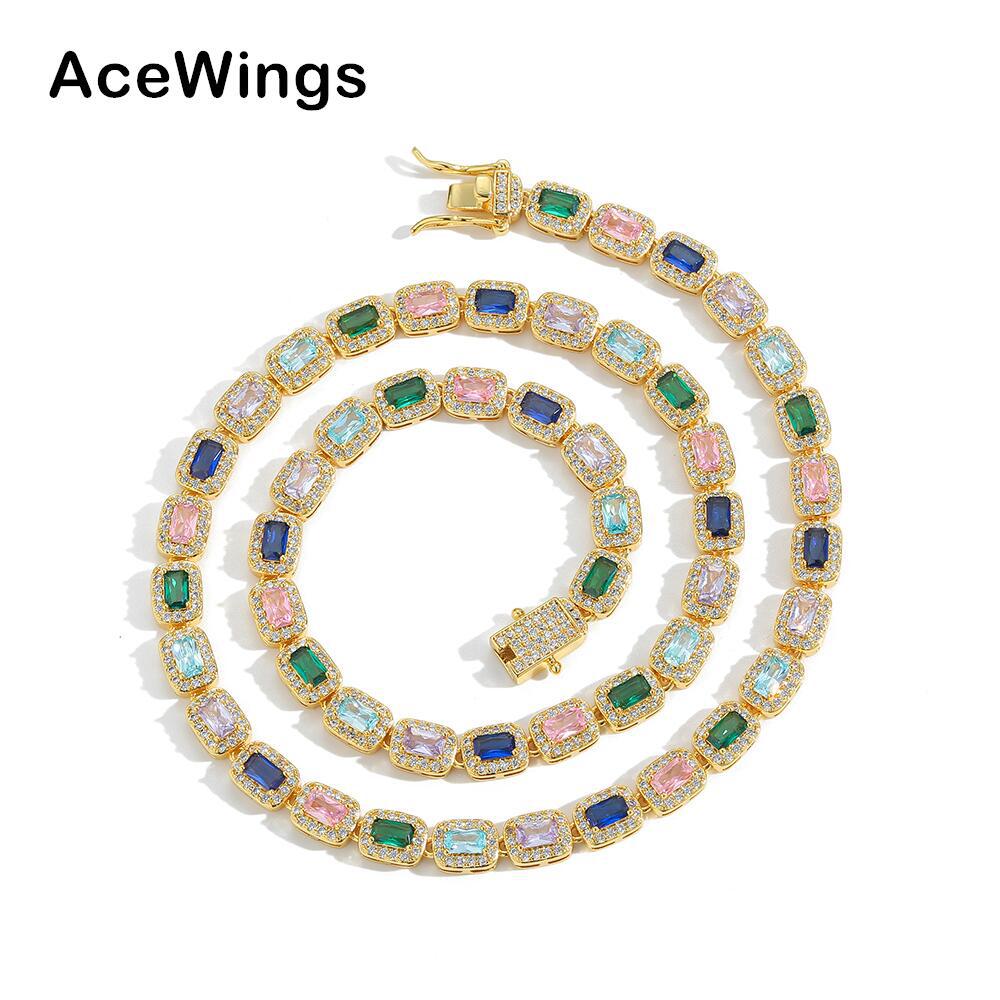 Colorful Rectangular Zircon Necklace Mixed with Colorfulful Zircon Single Row Chain Copper Inlaid Zircon Hip-Hop European and American Stacked Necklaces