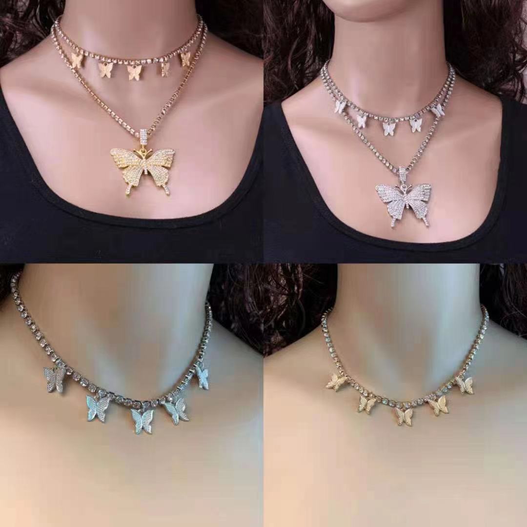 European and American cross-border jewelry retro simple diamond-embedded chain necklace female creative mix and match diamond-embedded butterfly suit necklace