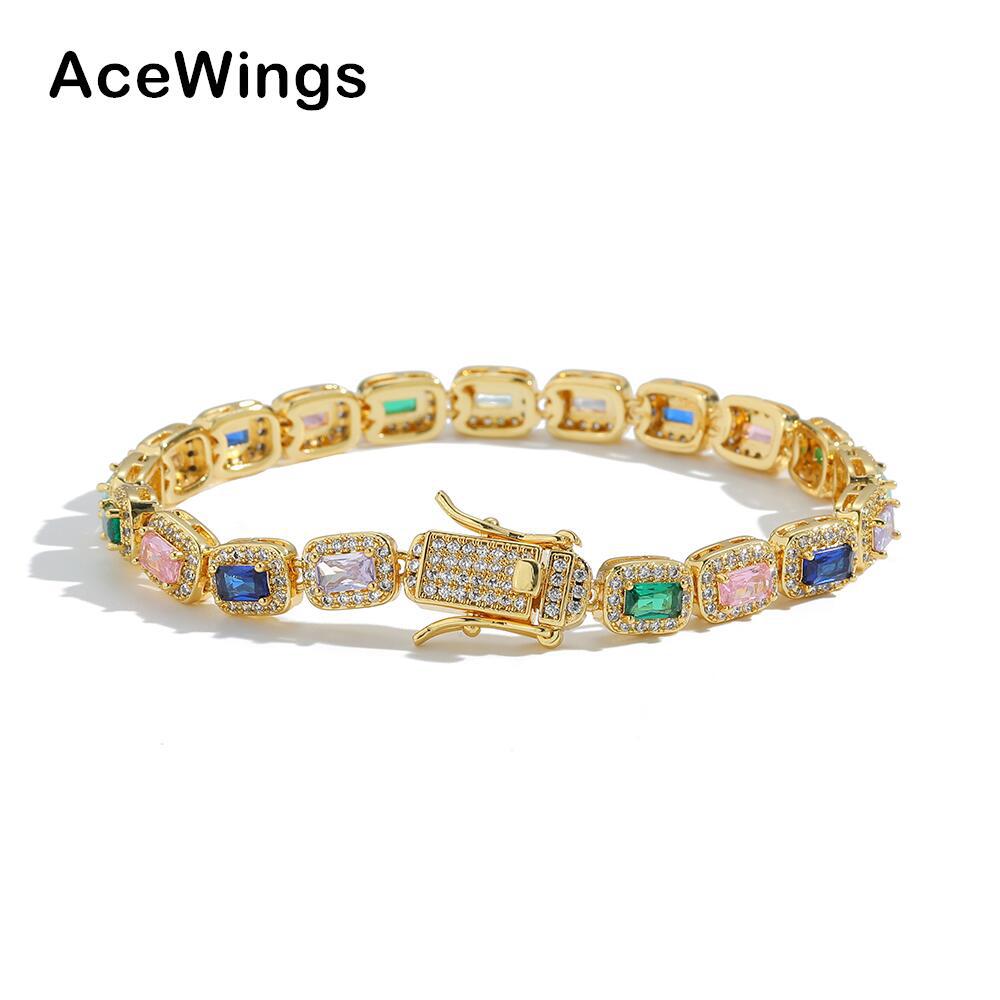 European and American Hip-Hop Jewelry Colorfulful Rectangular Zircon Mix and Match Bracelet Copper Inlaid Zircon Stacked Bracelet Tennis Bracelet for Women