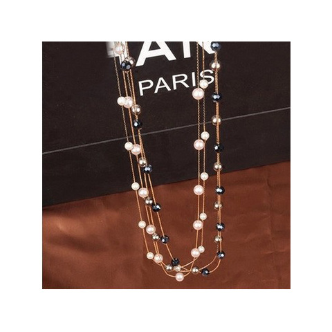 Korean Style Multi-layer Pearl Crystal Mix Necklace Women's Long Accessories European and American Exaggerated Big Brand Sweater Pendant Decoration