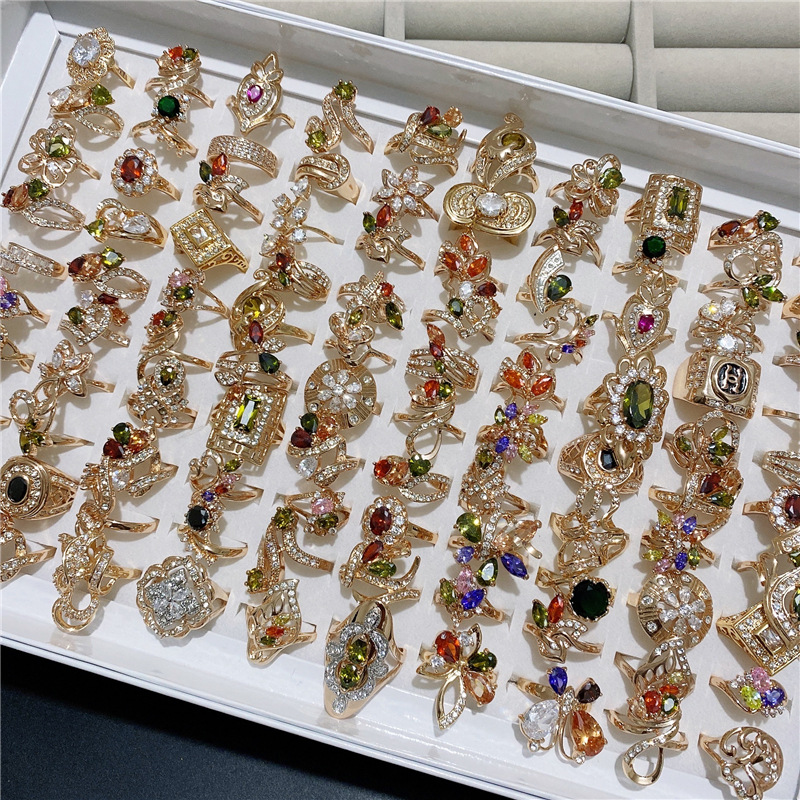 Korean style versatile exaggerated style personalized colorful color treasure ring gold-plated color-preserving micro inlaid zircon ring Boxed Wholesale
