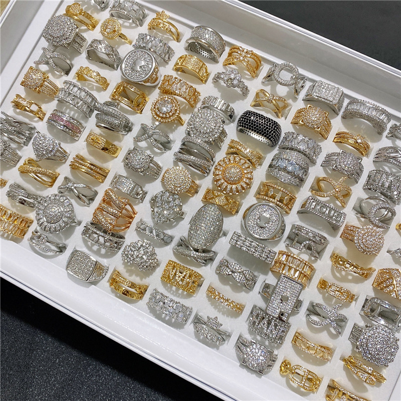 Cross-border European and American fashion light luxury geometric diamond ring micro inlay heavy industry niche exaggerated temperament ring mixed batch