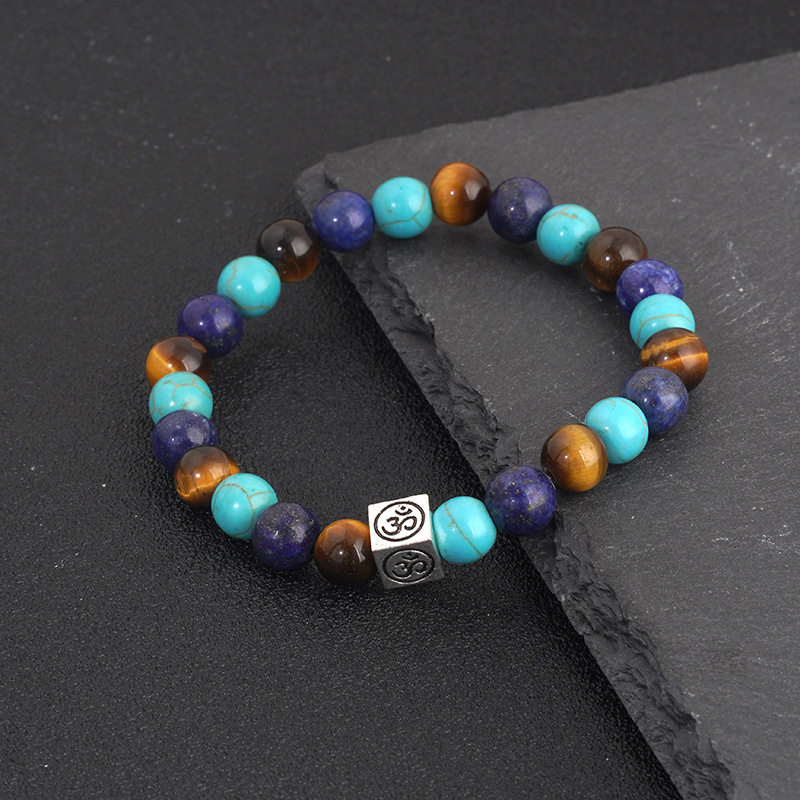 European and American Cross-Border Fashion New Style Blue Lapis Lazuli Tiger Eye Stone Bracelet for Men Amazon 8mm Mixed Buddhist Bead Bracelet