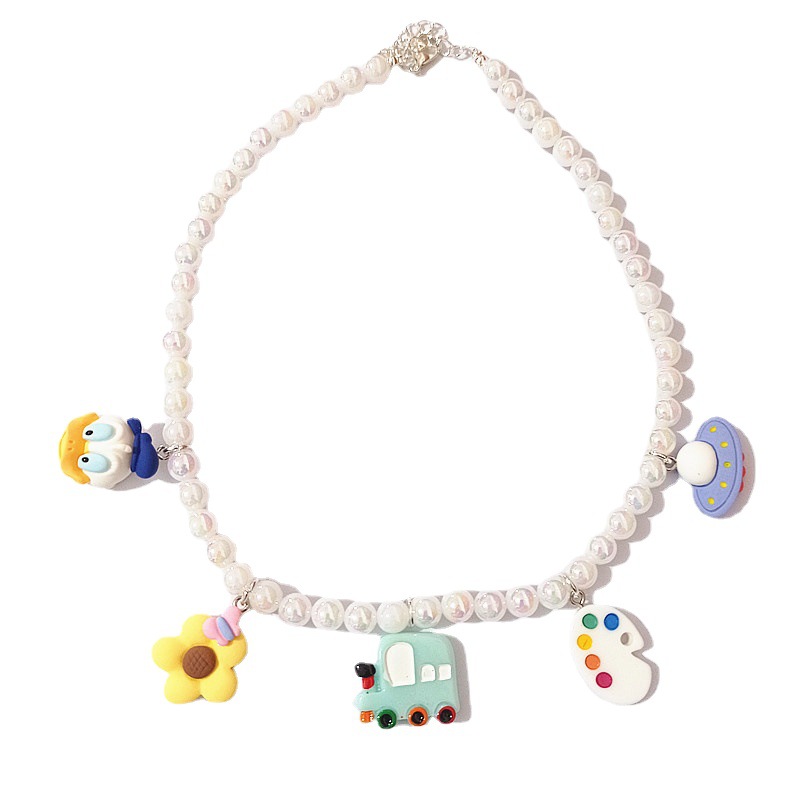 Cute cartoon resin car Donald Duck flower mix summer fresh beaded short necklace necklace for women