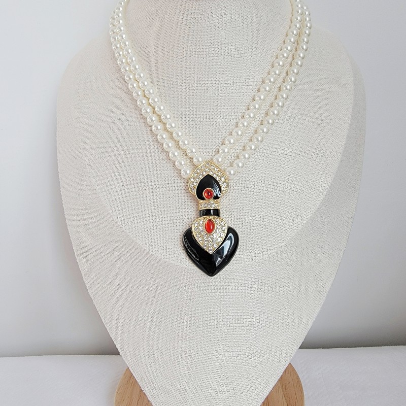 French elegant retro elegant pearl necklace dripping oil mix and match clavicle chain inlaid necklace