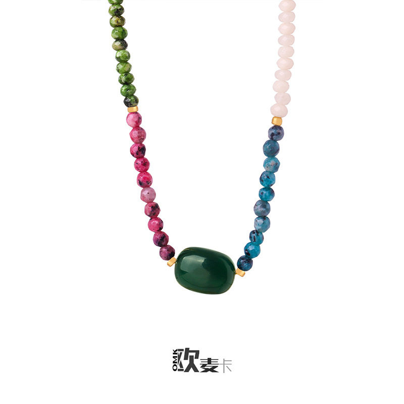 Bohemian Style Personalized Fashion Jewelry Mix and Match Color Agate Handmade Beaded Design Titanium Steel Gold Plated Necklace