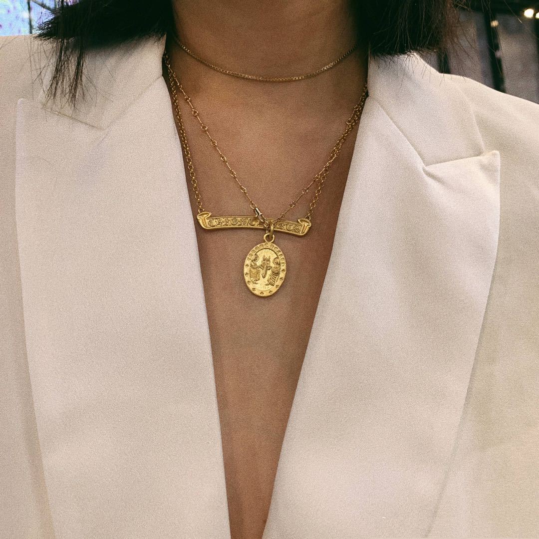 Internet Celebrant Same Style Crowe Gold Coin Horizontal Necklace Women's Fashionable Personalized Mix and Match New Style Metal Style Creative Clavicle Chain