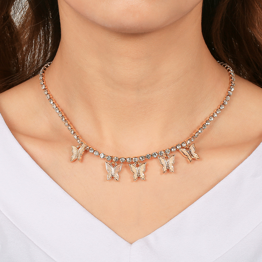 European and American Cross-border Jewelry Personality Geometric Micro-inlaid Temperament Necklace Women's Creative Mix and Match Butterfly Set Necklace