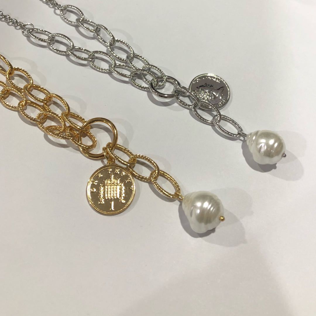 Baroque Special-Shaped Pearl Necklace Gold Coin Mix and Match Retro Stacked Instagram Ins Niche Design Exaggerated Long Necklace