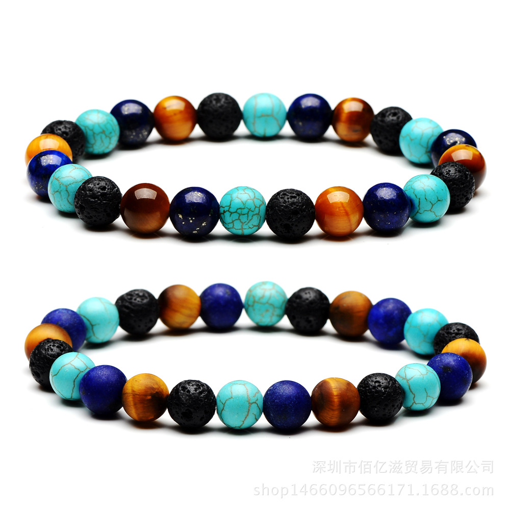 8mm Tiger Eye Bracelet Volcanic Stone Lansong Mix Fashion Frosted Lapis Lazuli Bracelet European and American Cross-border Jewelry