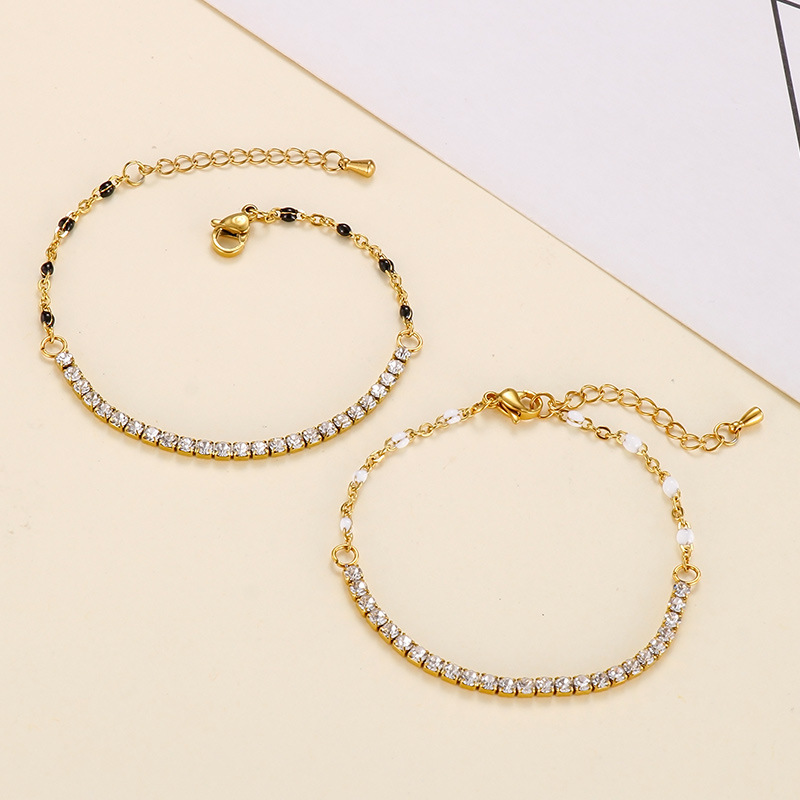 Ins Cold Style Student Gift Stainless Steel Diamond Chain Niche Design Mix and Match Stitching Color Enamel Bracelet for Women