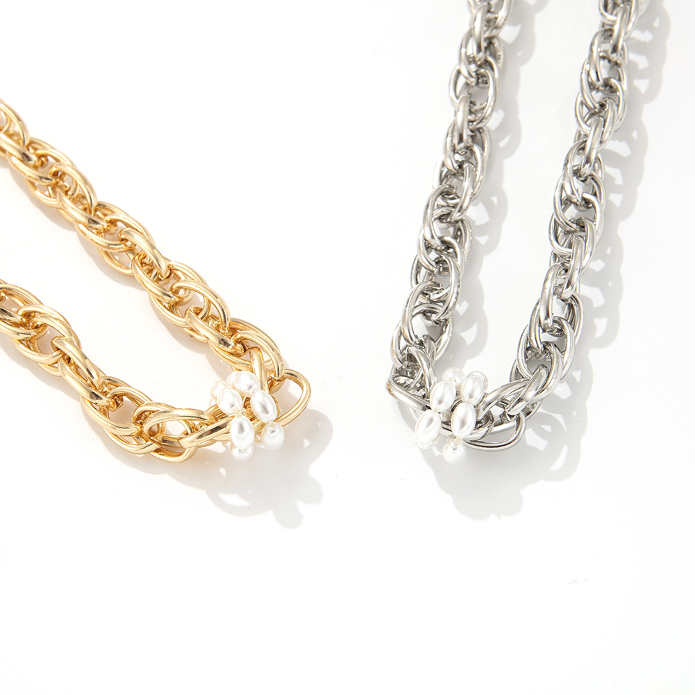 European and American cross-border jewelry simple handmade chain glass Pearl mixed necklace women's necklace