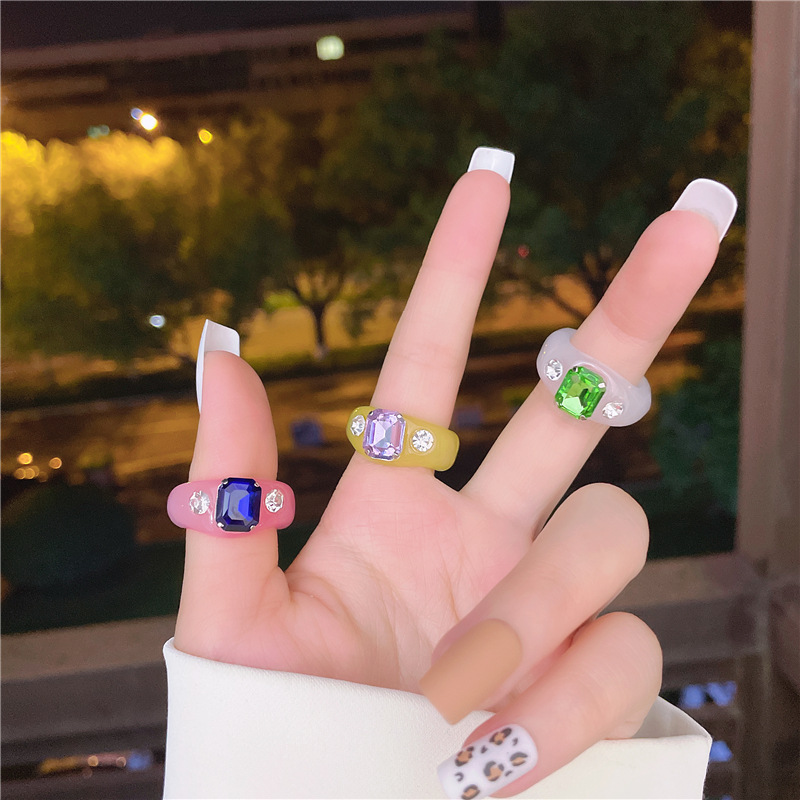 Little Red Book Recommended ins Mix and Match Wind Ring Resin Gem Jelly Color Ghost Horse Niche Wind Index Finger Ring