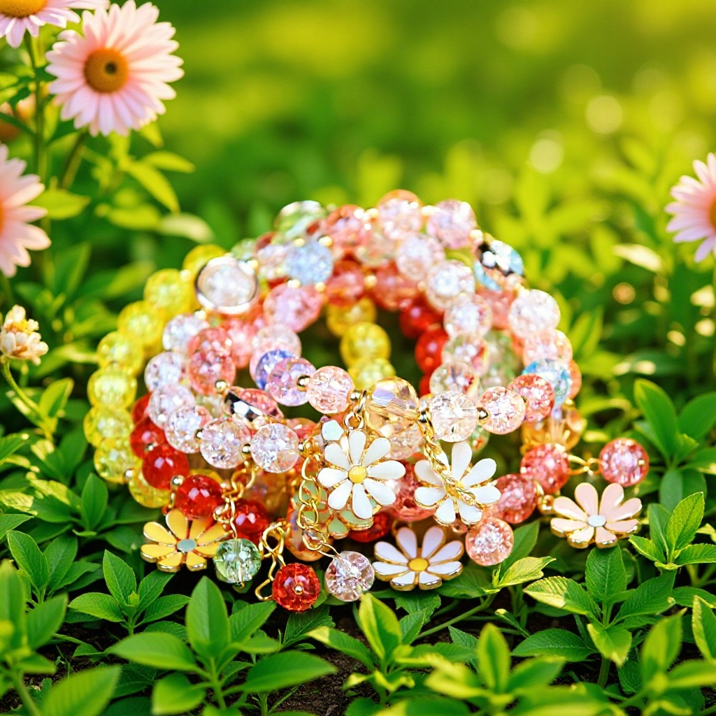 Rabbit Control Funny Small Fresh Cute Rabbit Carrot Thousand Flowers Glass Beads Mix and Match Elastic Bracelet Girl Fashion