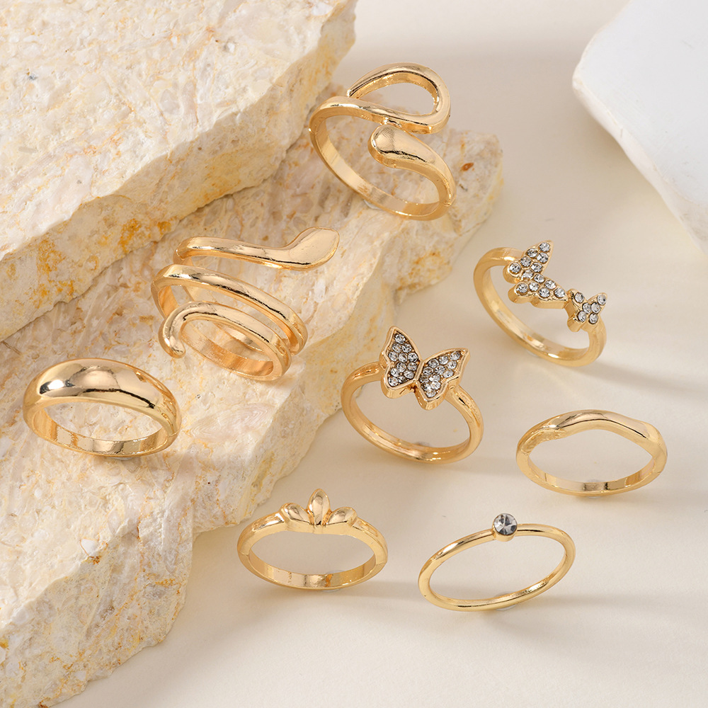 Rising Sun Irregular Mix and Match Index Finger Ring Women's Ins Simple Niche Distinctive All-Match Wave Opening Ring Stacked Wear