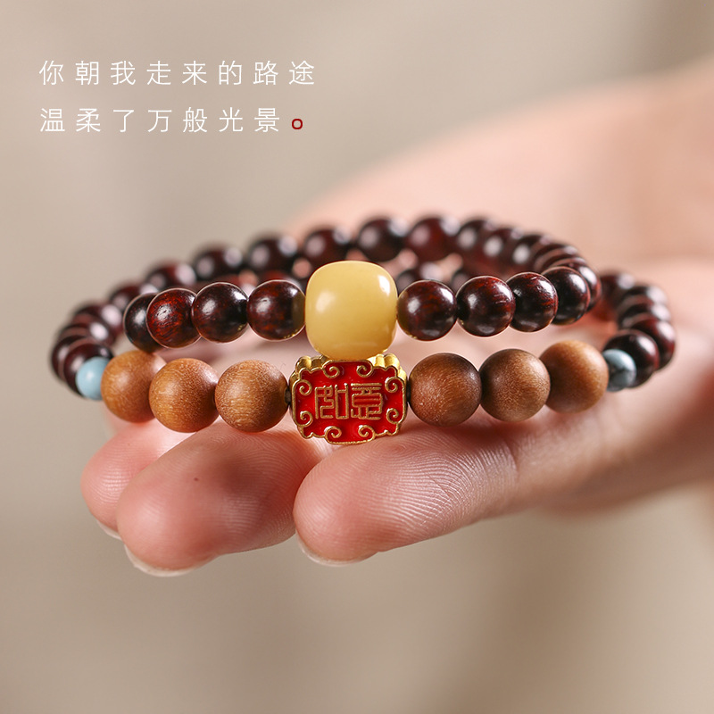 Original small leaf Rosewood rosary beads bracelet mixed sandalwood Mori creative ancient style double ring female rosary bracelet