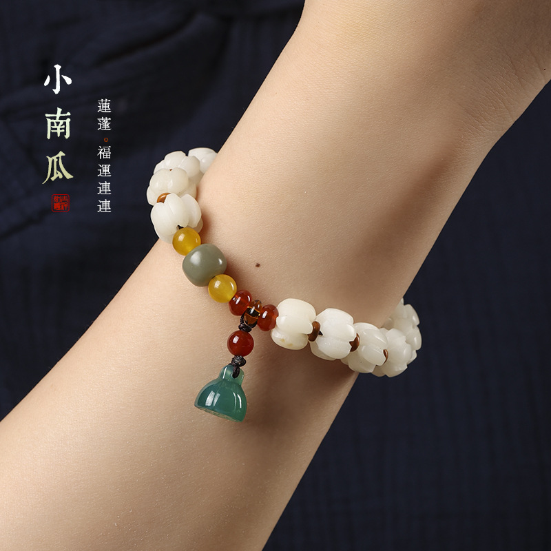 Pumpkin Beads Good Luck Bodhi Bracelet Mix and Match Jade Small Lotus Pendant Single Circle Ping An Mori Beads Bracelet